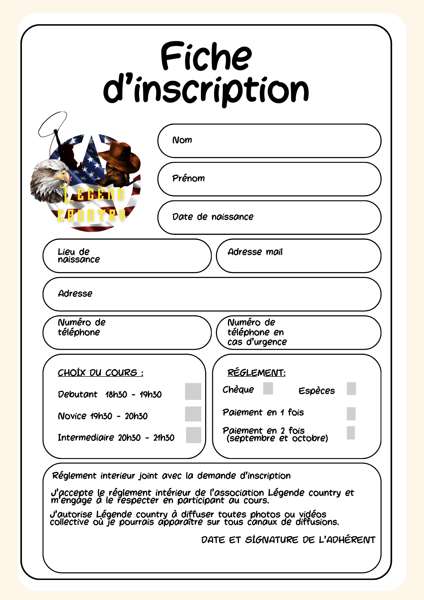 → La fiche d’inscription remplie.